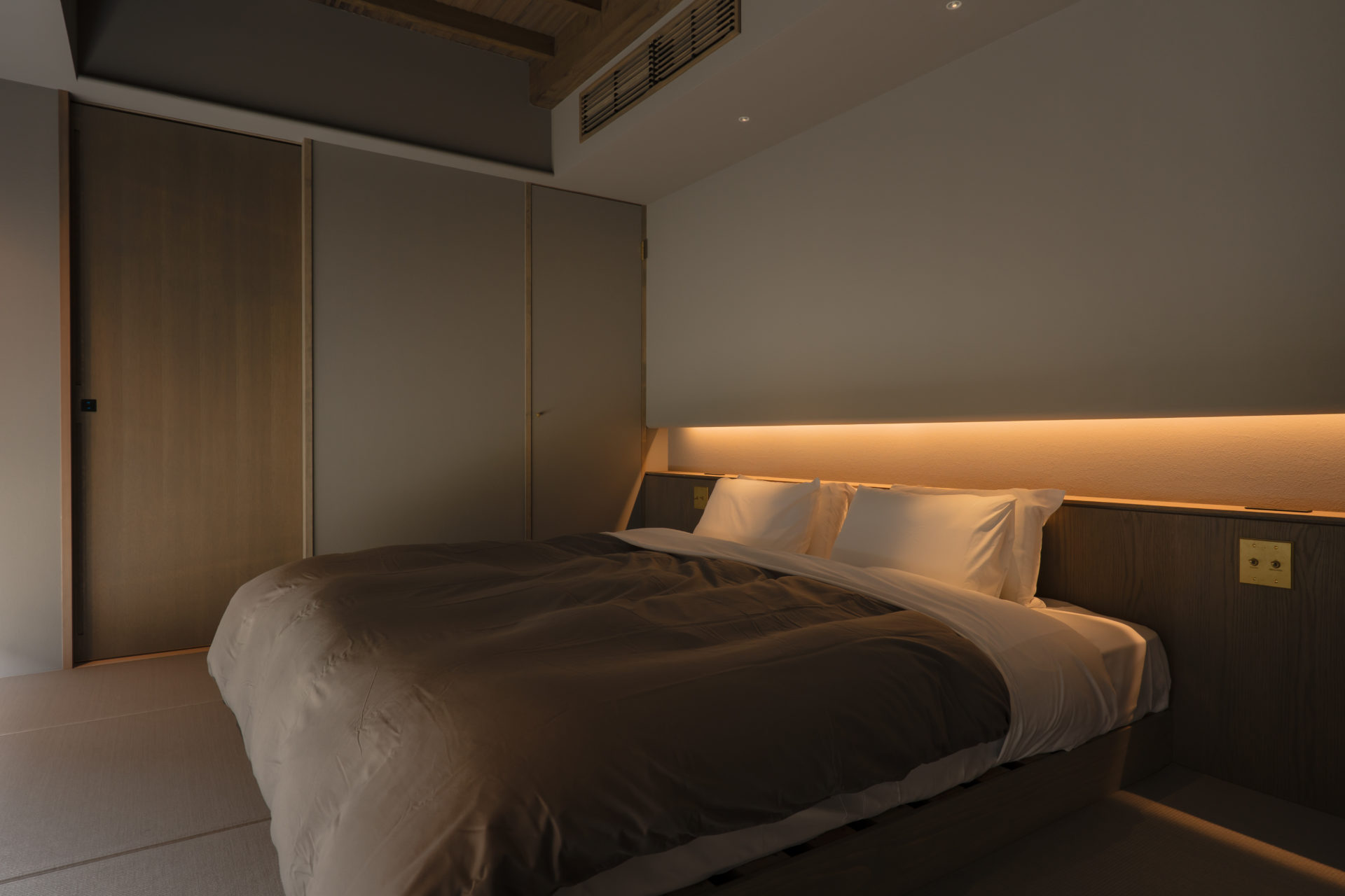 The traditional versatility of the Japanese tatami room—free from fixed functions—has been reinterpreted in a contemporary way. It is also a delight to search for the quietly hidden cherry blossom motifs.