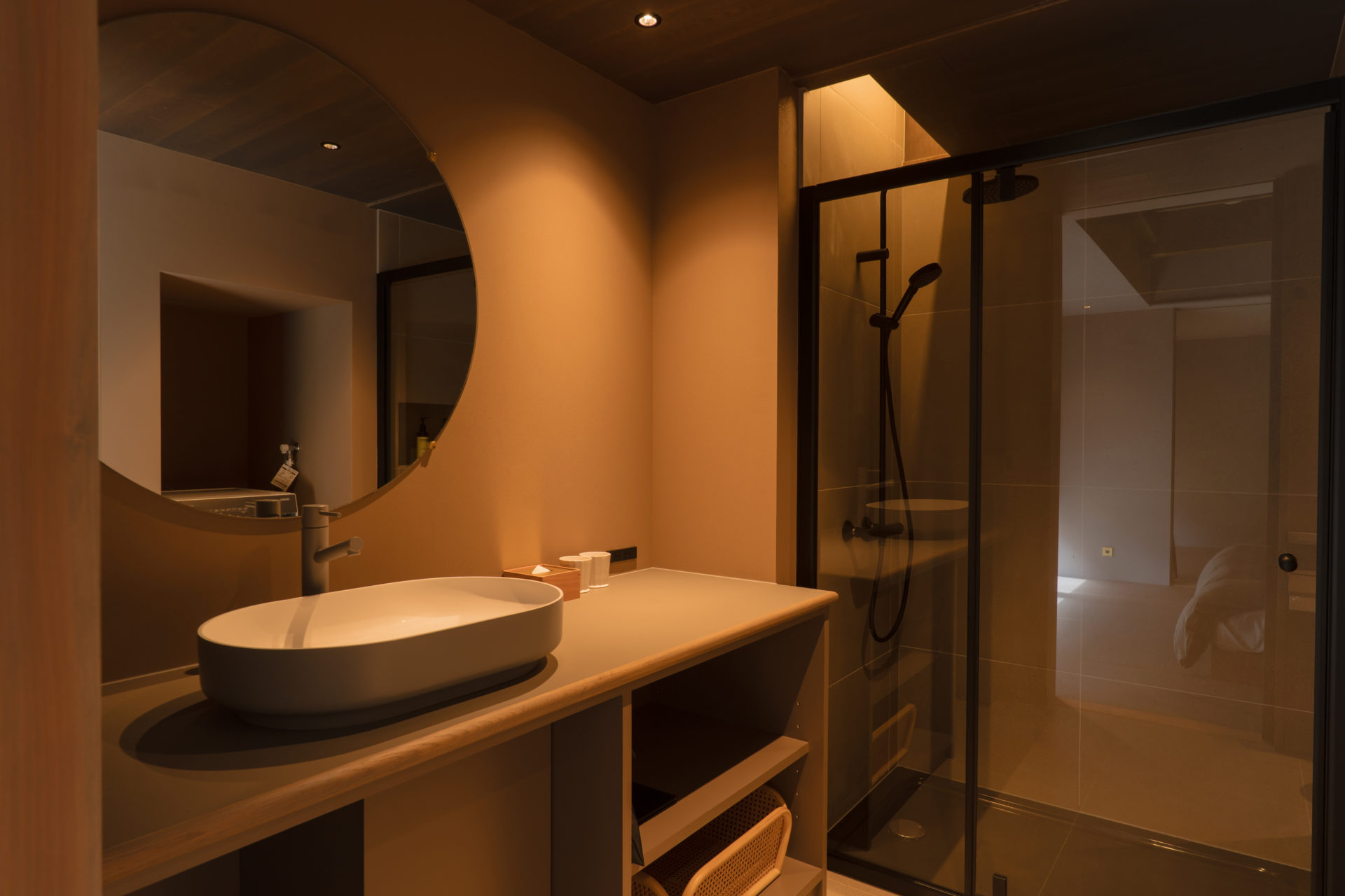 In the bath, seamlessly connected to the living area, you may even enjoy a toast with old friends while soaking your feet—one of the unique pleasures of OUKA.